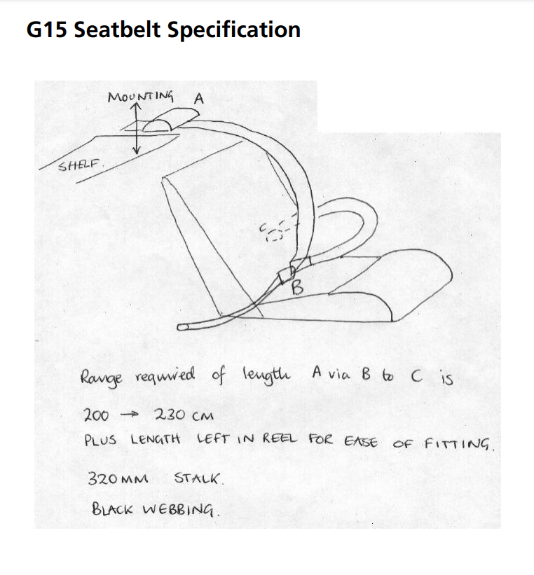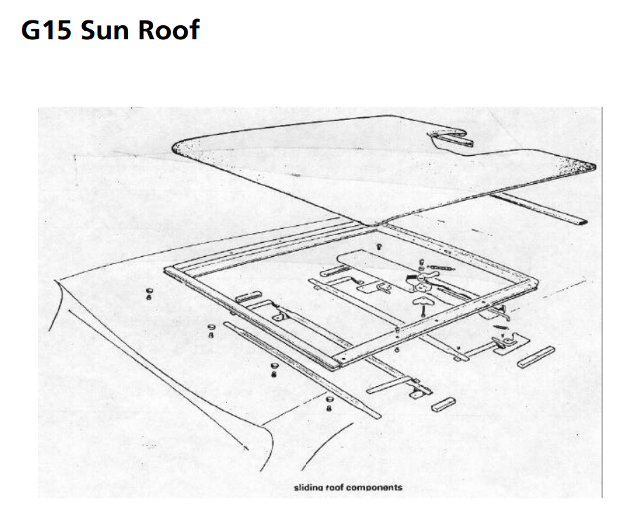 G15 Technical Guide - bodywork Approximately 120 cars exist with the small rear window. Chassis numbers are not an accurate guide. Large rear window cars exist before chassis no. 120 for instance. Type 1 cars in the register should really be types 1 and 1A as the very early cars have major differences from most of the cars we call type 1. The early cars have a modified pedal box with a different body moulding at the bulkhead. The last car known like this is G15/0158. Early cars also have a detachable radiator/intake support (i.e. except the very few early cars with radiators fitted as per Imp at the rear). Bodies: therefore are types 1, 1A, 2, 3 and 4. Major variations being the rear quarter window size and the front side light/indicator light siting, the front bumper and the door handle arrangement (see John Rose's book). Bonnet: three types. Variations are for the type of filler cap. Very early - no hole. Most of type 1 - round hole. All flip-up caps have a shaped hole. Boot lid (engine cover): all the same, hinges are Imp (chrome). Imp rear locks with the body fittings made by Ginetta. Headlamp pods: all the same. Doors: Early with MGB handles and 'wire' restraint catch. Late with Marina/Lotus/Range Rover handles and proper restraint catch. Door hinge fitting and adjustment Bumpers There are two different front bumpers (apart from Ginetta's air dam assembly). Both are adapted early Beetle (rear) bumpers. Early cars had no middle buffer strip - the only difference therefore is the cut-down length. The rear bumper is Riley Elf and not Wolseley Hornet which had over riders (although this will fit). Screens: These are special. The rear screen incidentally is not flat as standard. Side screens originally 3/16" Perspex, but now use 4mm, with Mini fittings Removal and refitting - Open the roof to the halfway position and get an assistant to hold it steady on one side, whilst you pull the other side forwards to detach the nylon sliders from their runners. Repeat this procedure until all the sliders are free. Unscrew and remove the four retaining screws and then lift the roof panel clear. Refit in reverse order. Should adjustment be necessary proceed as follows: Panel fabric can be tensioned by means of the four screws. Loosen them and adjust as necessary in the elongated holes, then retighten the screws. If the roof is stiff in operation apply some silicon lubricant on the runners. Sliding roof catch - removal and refitting. Remove the sliding panel as described in the previous section. Pull each end of the front listing rail from the fabric and the fabric from the box section. Unscrew and remove the two retaining screws and lift the metal section away. Refit in reverse order. All the above details were taken direct from the workshop manual. With Ginettas being what they are we're sure yours will probably be different in some respect. Fittings: Door hinge manufacture - Engine cover locks - Battery box Trim & Interior: Carpet layout - Seatbelt specification |