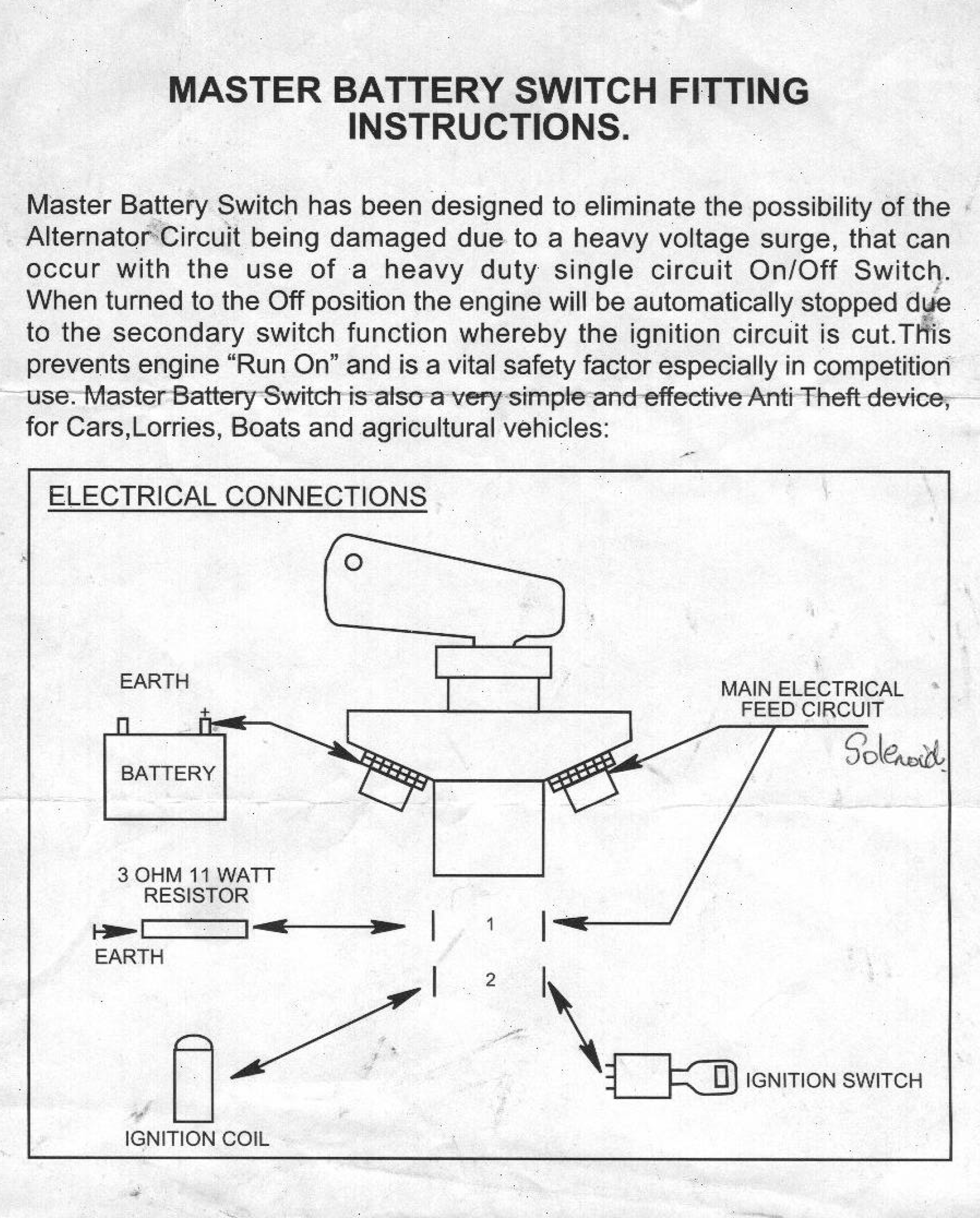 Tacho wiring diagrams (pdf file) - Master Battery Switch